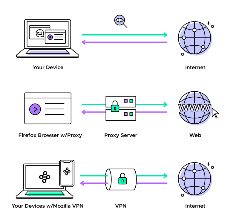 VPNs do more than proxies in that a proxy only protects what you do in your browser, whereas a VPN protects all your traffic, including your browser, wherever you have a VPN installed and enabled. VPNs provide added security and privacy for all your online activity — an important consideration if you want to keep your activity to yourself and make it more difficult for data hungry trackers and ISPs to create a profile of you across all your devices, like your phone, computer and tablet.