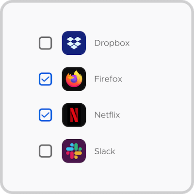 Easily exclude apps from VPN protection — no need to disconnect your device from Mozilla VPN. Available in Windows, Android and Linux devices.